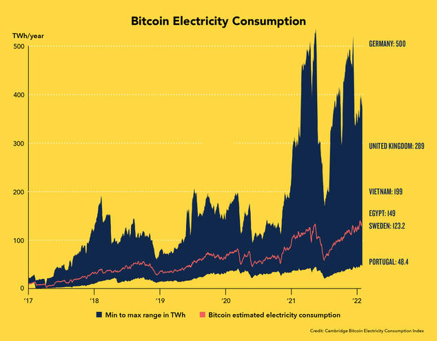- Every blockchain is dependent on computers to verify transactions and keep track of them on the public ledger. The electricity powering those computers isn't always solar and the amount of energy it takes is not trivial. For instance, the electricity consumption of Bitcoin is more than an advanced country like Sweden. Web3 is not alone in its impact on the environment. Things like online advertising and the banking industry both have as much or more impact than crypto and the Outdoor industry could not operate without them.