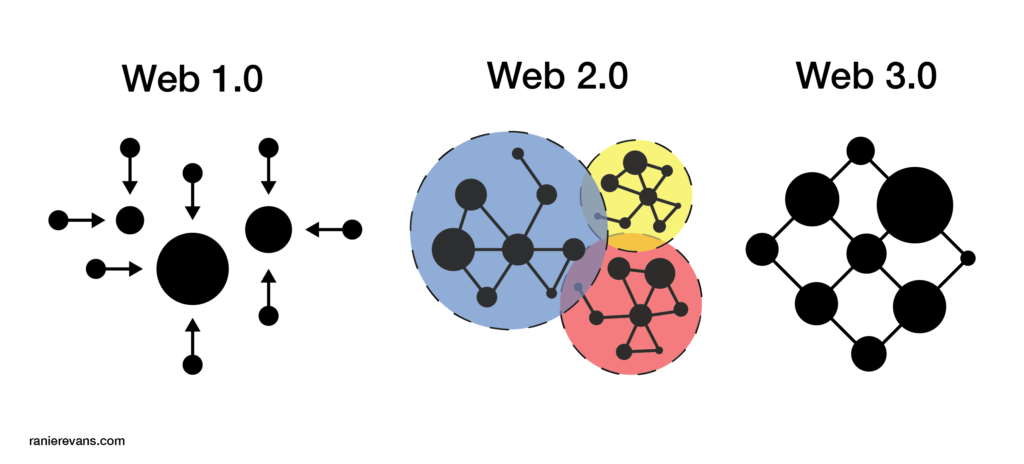 To better understand the third iteration of the internet let's look backward. Web 1.0 was the internet in its infancy. A world built of static websites, blogs, and message boards. The next evolution was the introduction of social media which encouraged participation instead of just passive consumption. This is Web 2.0, which soon lead to the centralization of large amounts of user data on platforms like Twitter, Facebook, Instagram, Snapchat, etc.